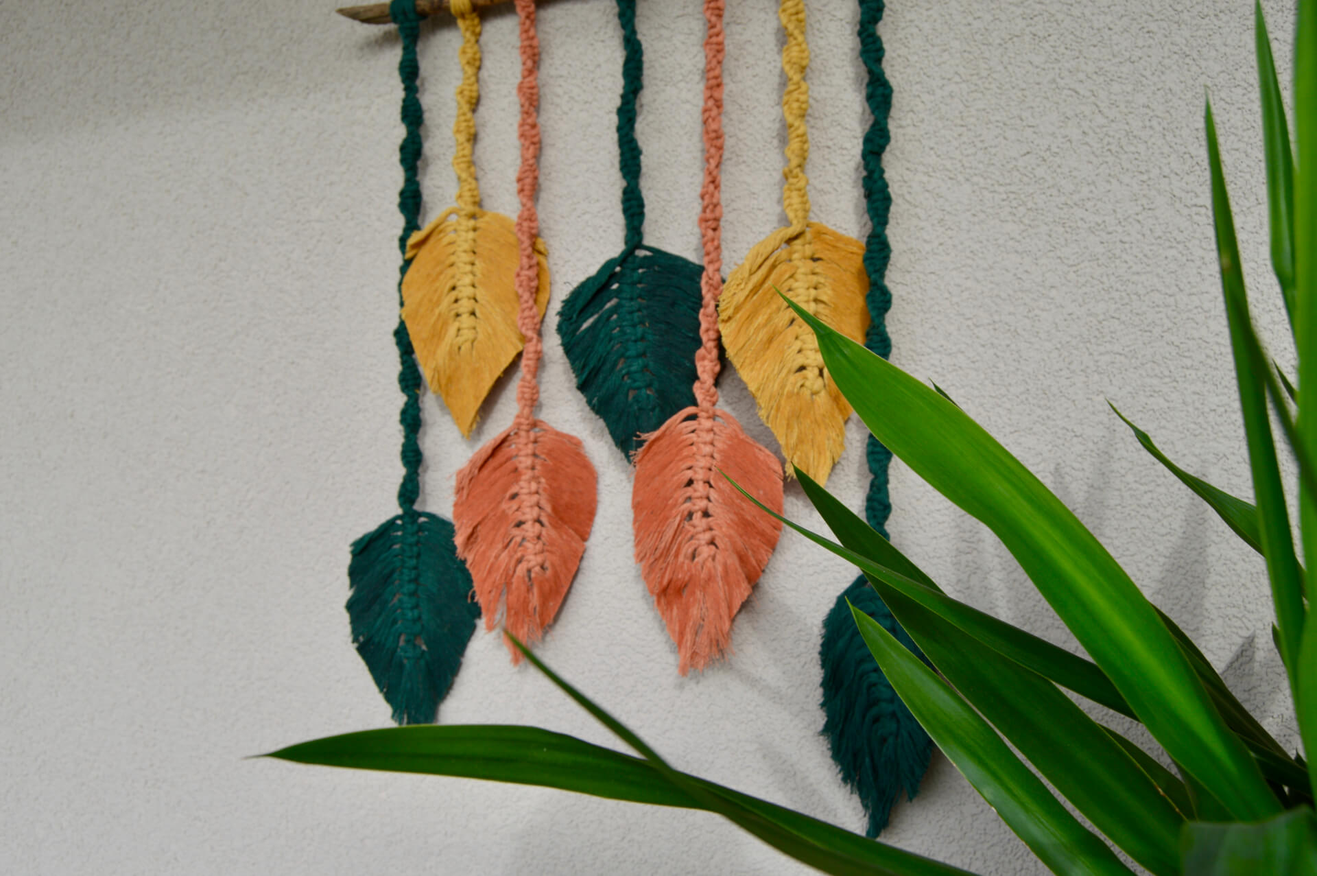 Přineste do svého domova dotek přírody s naší elegantní závěsnou dekorací macramé ve tvaru listů. Ručně vyráběná z přírodních materiálů, tato dekorace dodá vašemu interiéru boho šarm a styl.